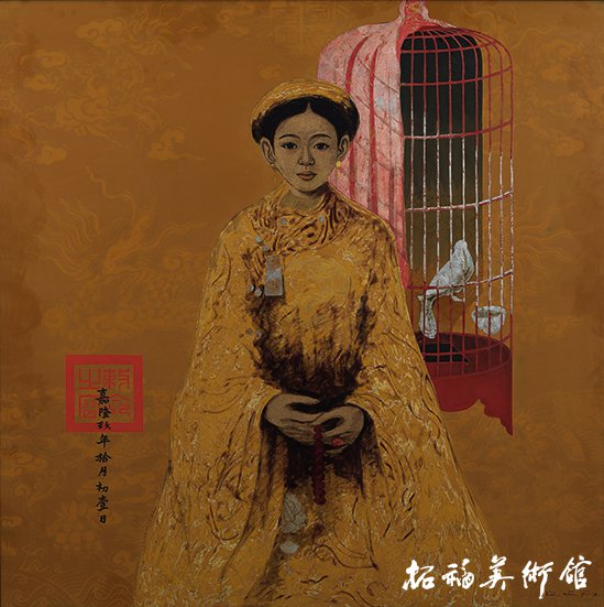 裴友雄,1957年出生于越南,1966 年成为国际漆画画家协会的会员,先后在美国、迪拜、伦敦举办个人展。参展作品《鸟笼旁的女人》使用木胎、描绘、金属箔漆工艺,不仅挖掘古代的服饰与图文风格,而且还形成了一种独特的世界观。