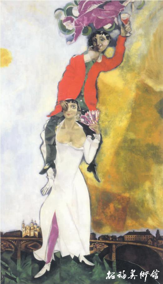 画家以他的自画像和爱人帕拉的肖像为元素,创作了这幅作品。画中弥漫着宛如梦中景象的愉悦气氛。在他的画中所爱的人出现漂浮的形态,以此表达心中的爱意。在夏加尔的作品中,处处充满象征符号,展开幻想的翅膀,任意翱翔,创作了一个自由的空间国度。