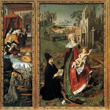 1481-1486年间,巴托洛梅·贝尔梅若又到了巴伦西亚,在那里,热那亚的商人弗朗切斯科·德拉-奇埃萨向他订制了三折画《蒙塞拉圣母》,那是为阿基·特尔姆大教堂(意大利)订制的,是他画了中间的一幅大画,两侧的画由奥索纳家族完成。